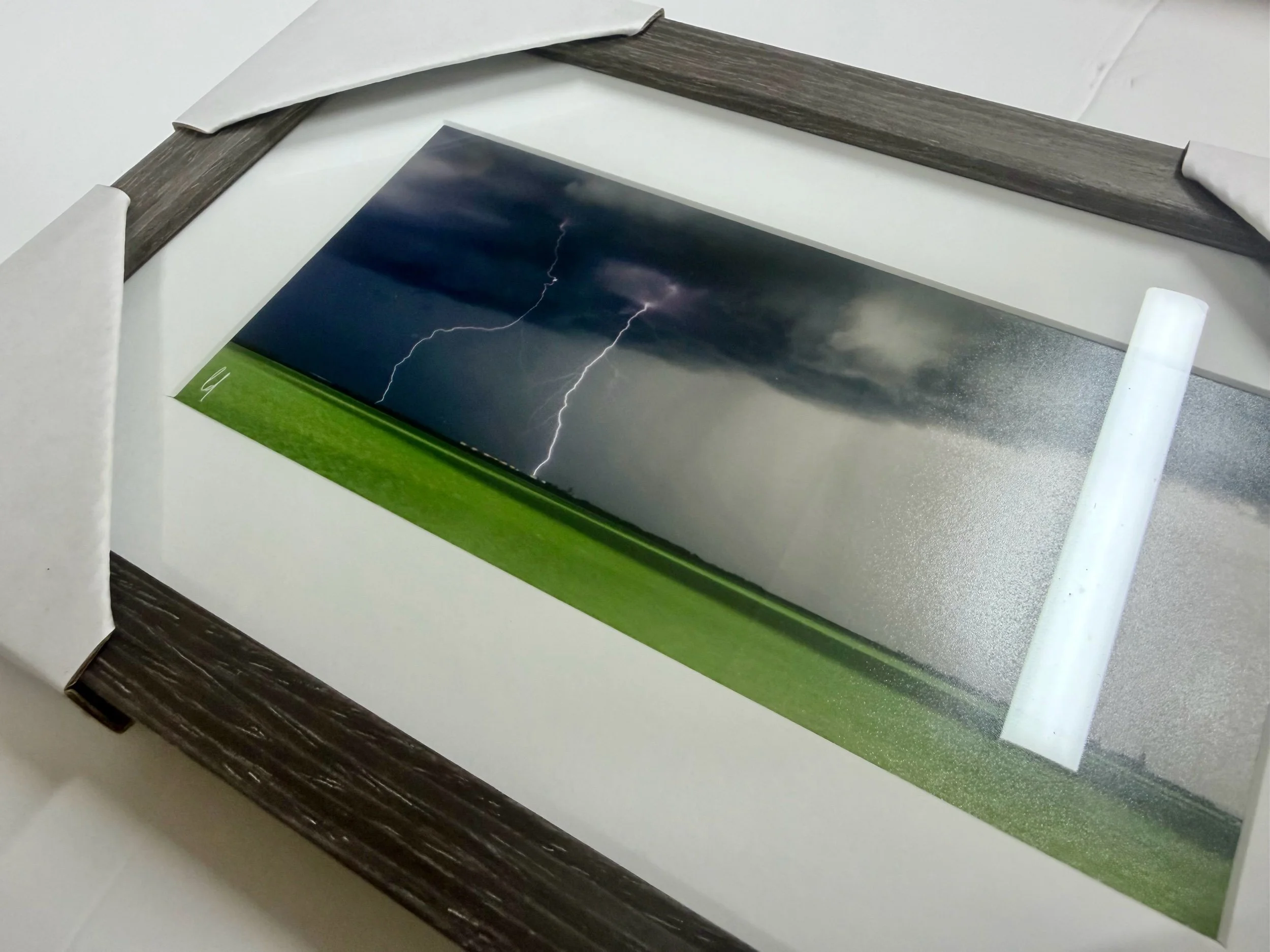 This is framed in a grey timber frame, measuring 20 x 30cm